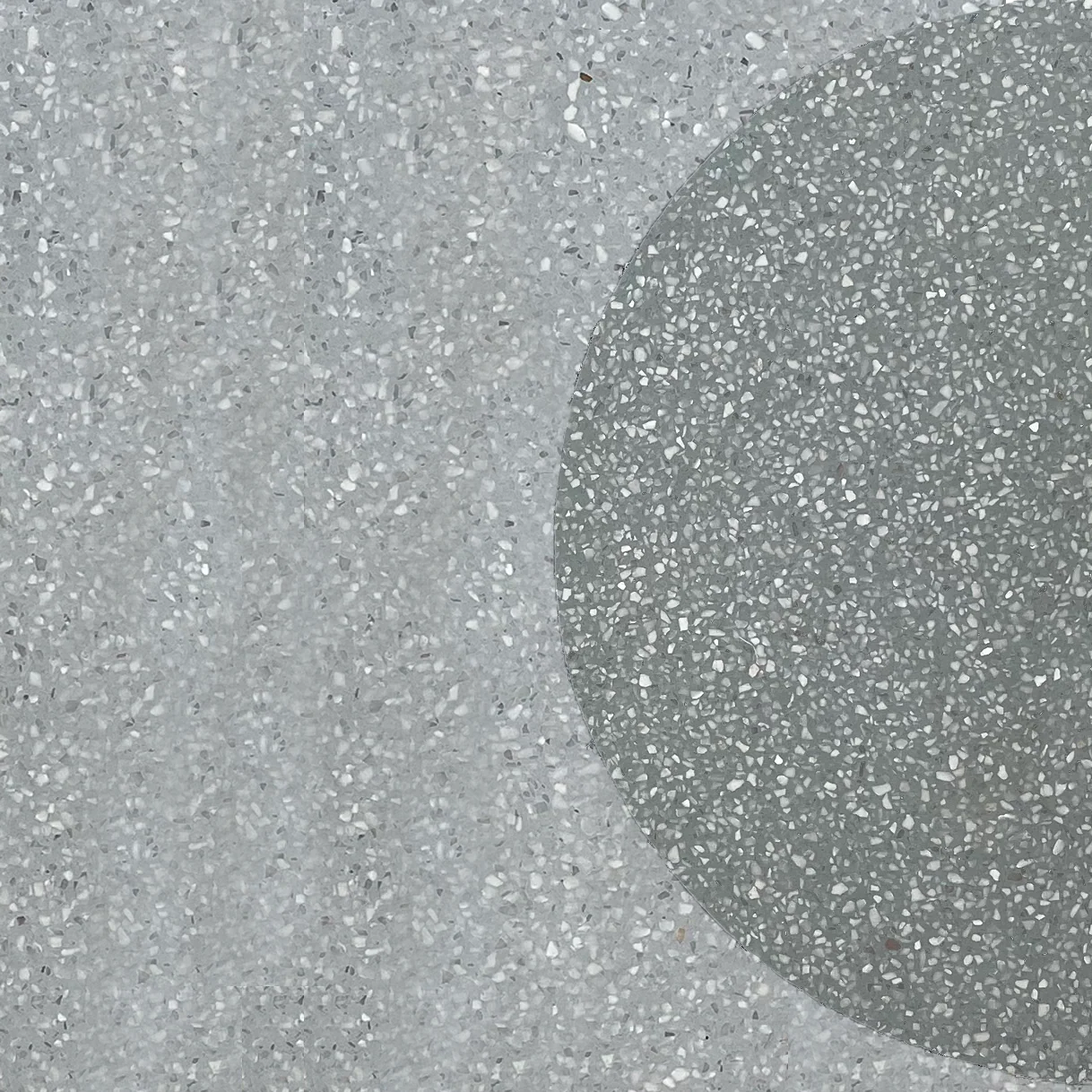 these geometric patterns incorporate half moon and crescent shapes that are boldly architectural and deco inspired, softened in our extra small marble chip signature terrazzo finish. the curved shapes can configure with the solid and lined tiles to create the overall design.